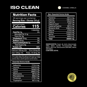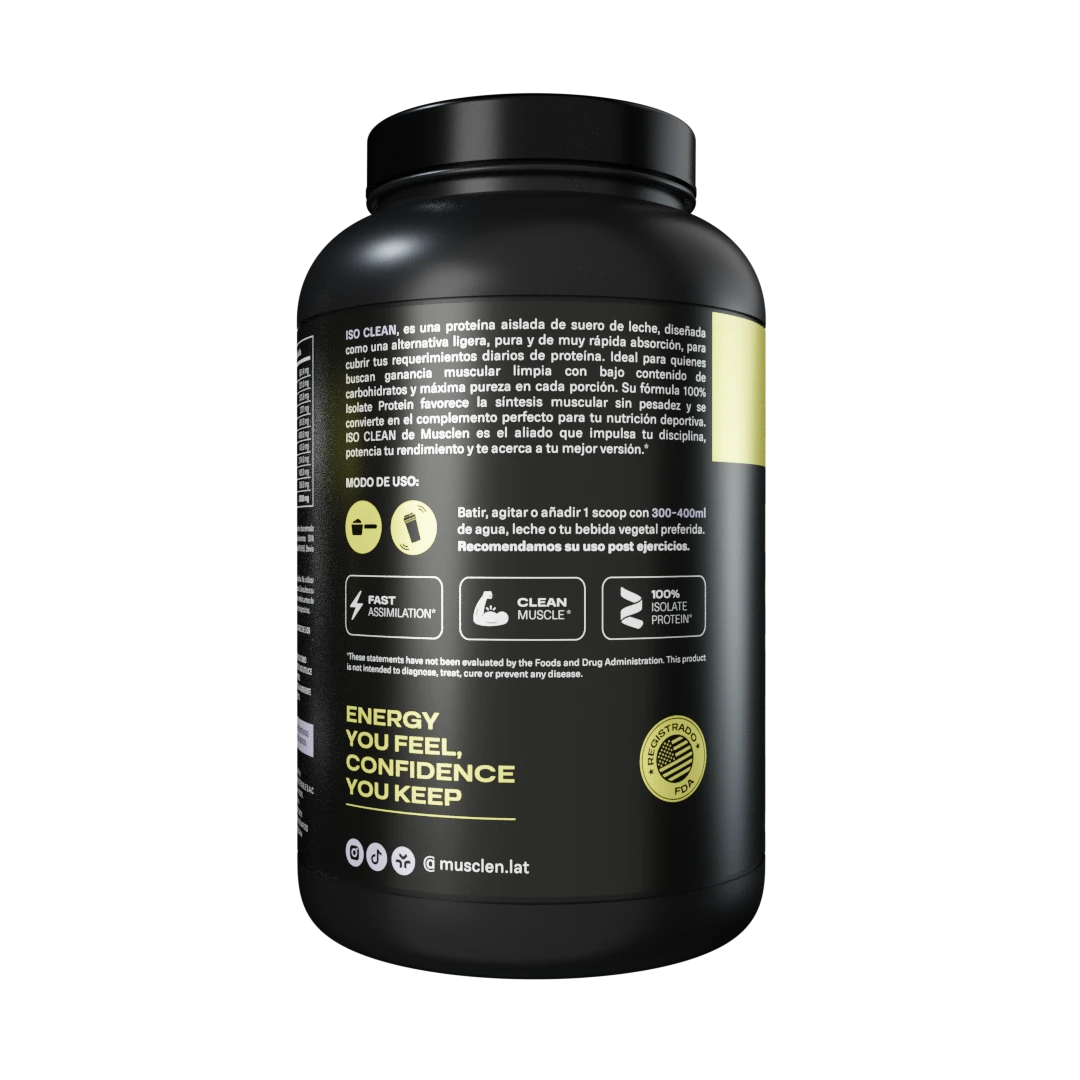 Para los que entrenan con propósito, para los que buscan fuerza limpia, recuperación rápida y resultados reales. Ultrafiltrada. Rápida. Precisa. Iso Clean de Musclen® entrega lo mejor del suero de leche con la mayor pureza posible y baja en carbohidratos. Ideal para quienes buscan ganancia muscular en etapa definición y mantenimiento.